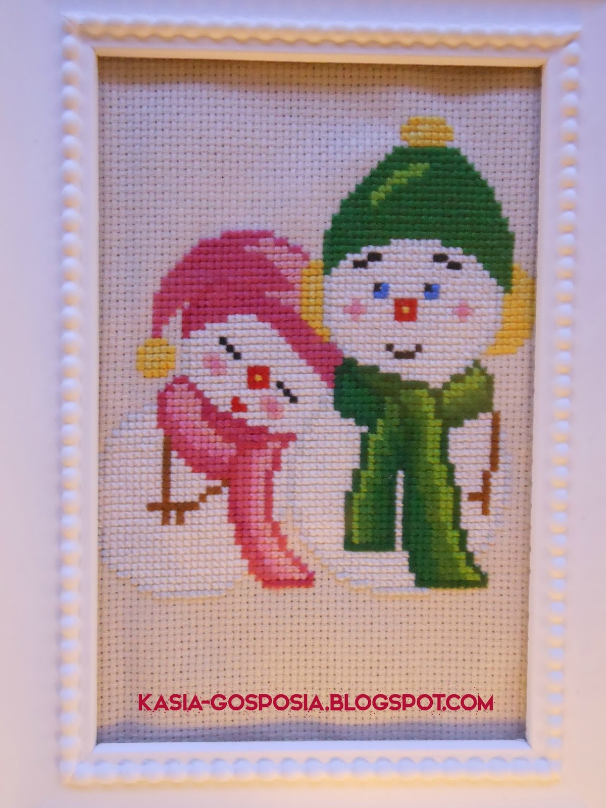 Pogoda nareszcie nam dopisała i jest mróz! Może jestem jedną z niewielu osób, ale mnie to bardzo cieszy. Po to jest zima, aby było zimno, żebyśmy mogli narzekać na to i pić litrami ciepłą herbatkę – jak ja to robię w tej chwili (imbirowo-cytrynowa – pycha!). Wspominałam Wam kiedyś, że jestem testerką wzorów do haftowania krzyżykami u Moniki – Igiełki. Do tej pory testowałam tylko Motylki, ale jak zobaczyłam te Haftowane Bałwanki to po prostu P-R-Z-E-P-A-D-Ł-A-M.